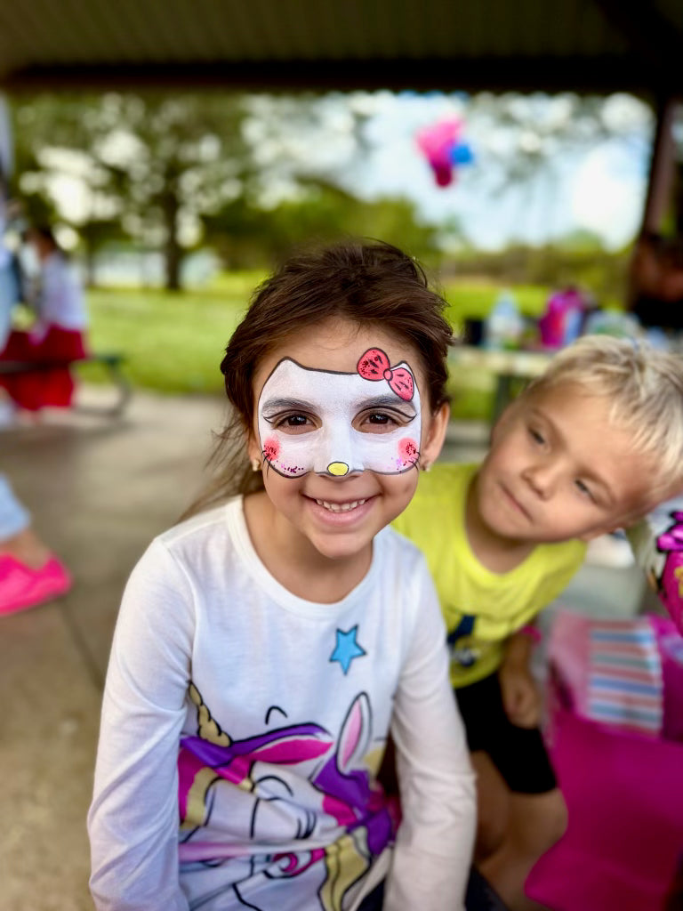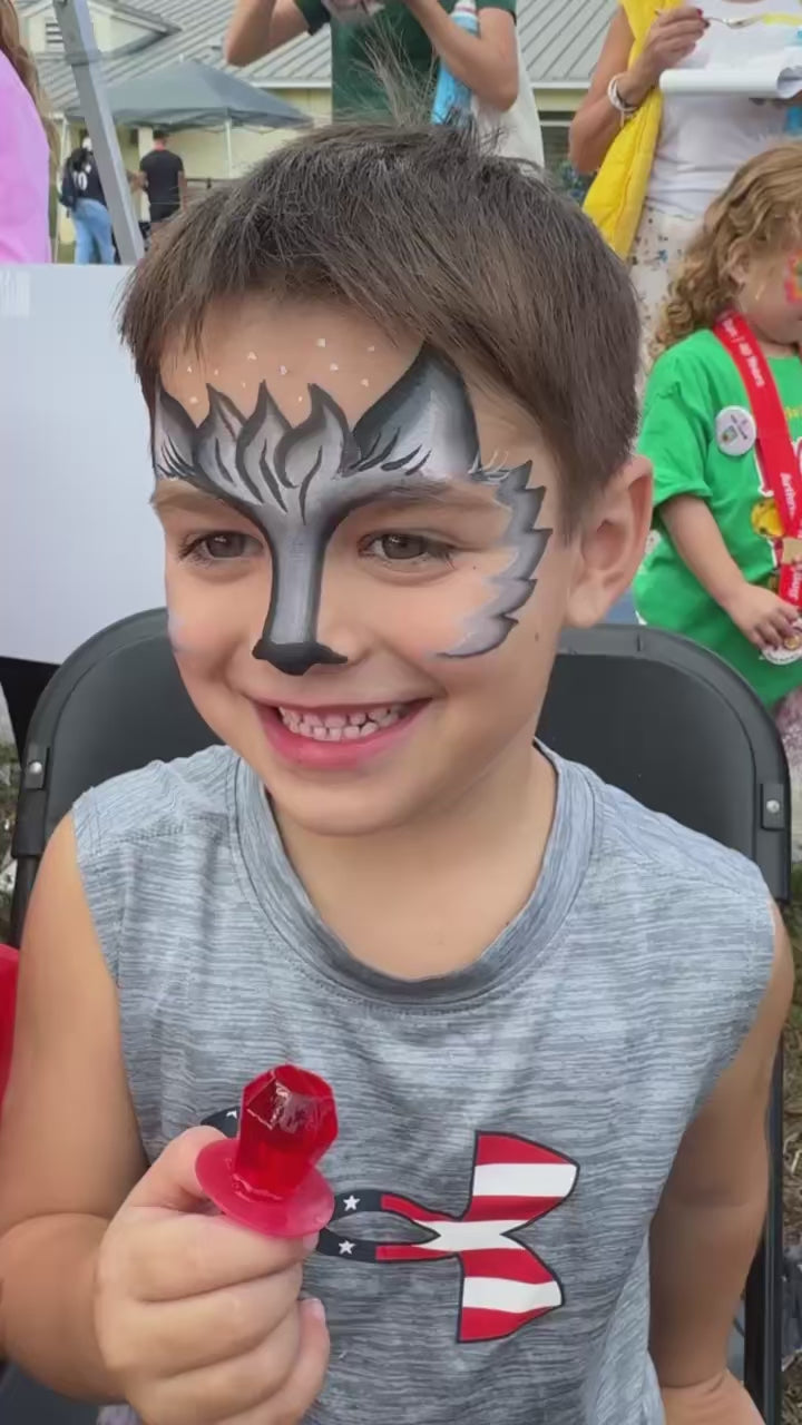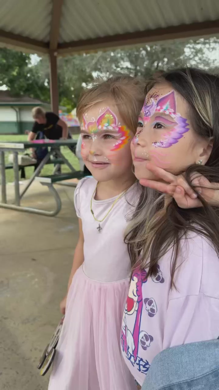 We use Snazaroo water-based face paints, known for their safety, vibrant colors, and easy removal. Choose from dazzling designs like unicorn face paint, tiger face paint, bunny rabbit face paint, and many more — or request a custom creation!
